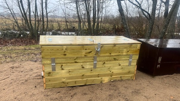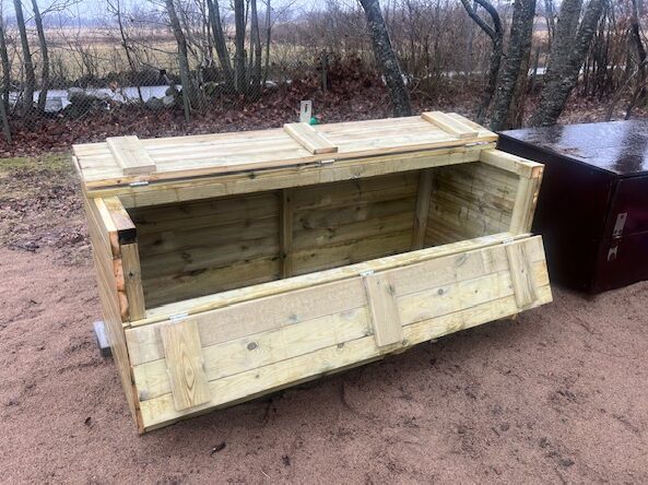 En av Spannarps föräldrar har byggt en fin låda till skolans sandleksaker.